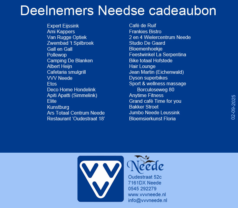 NEEDSE CADEAUBON en VVV Cadeaukaarten